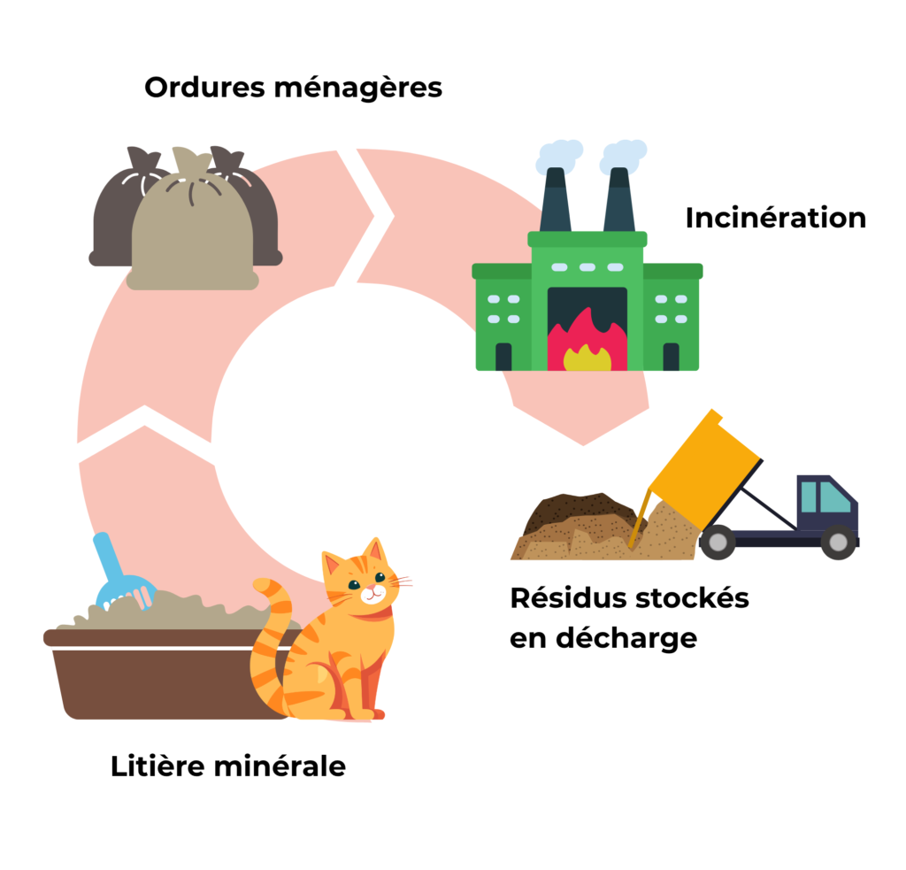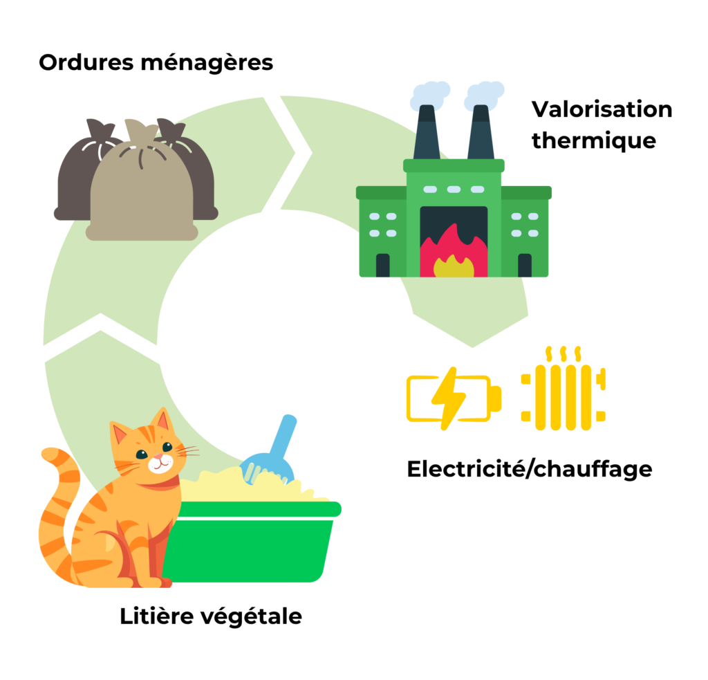 La litière végétale s’élimine avec les ordures ménagères. Elle n’a pas sa place avec les déchets organiques car la litière souillée contient des germes potentiellement pathogènes.